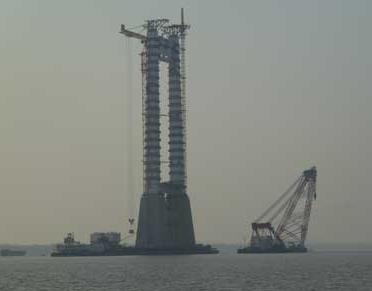 中塔施工现场远景图,武汉修明智能家居设计有限公司是国内第一家将复合润滑涂层用于桥梁润滑系统,国内第一家将鞍座之间摩擦系数达到0.04,桥梁鞍座与座体之间润滑结构已获国家专利,已在国内多座大型跨江桥梁应用此润滑工程技术。