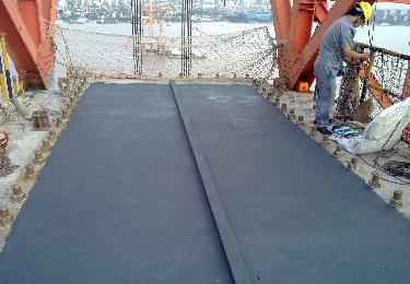 鞍座就位前再次把关,跨江大桥鞍体鞍座润滑工程系统,公路大桥鞍座与座体间自润滑减磨结构,技术方案:钛晶核处理技术,二硫化钼自润滑减磨涂覆技术,超润滑石墨希氟油涂覆技术,高强二硫化钼合金珠分布技术,抗高极压二硫化钼油脂技术,五种技术优势的叠加形成的复合涂层。